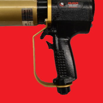 The Operator Safety Valve “OSV” is a retro fit accessory that can be fitted to any pneumatic RAD tool and is guaranteed to keep the operators hands away from the reaction arm which equates for 99% of pinch point injuries. Once the “OSV” is fitted to the tool, the operator must only operate the unit using both hands. One hand on the conventional trigger and the other on the OSV secondary trigger, located at the back of the tool ensuring both hands are away from the reaction arm.