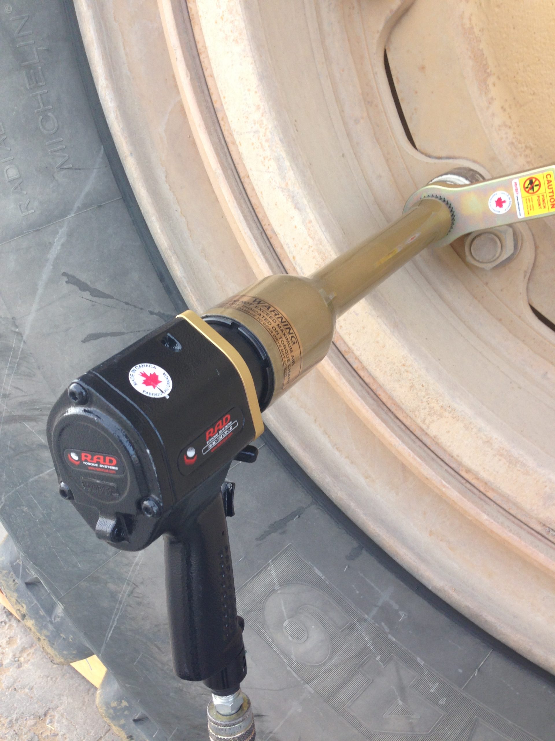 The RAD Wheel Nut Bolting series is engineered specifically for wheel nut applications where precise torque control is critical. Incorrectly tightened wheel nuts are a serious safety risk in mining, and traditional impact wrenches can exacerbate these issues while increasing the risk of HAVS-related injuries. These pneumatic tool kits include extensions and reaction arms designed for the unique demands of OTR (Off-the-Road) mining operations.